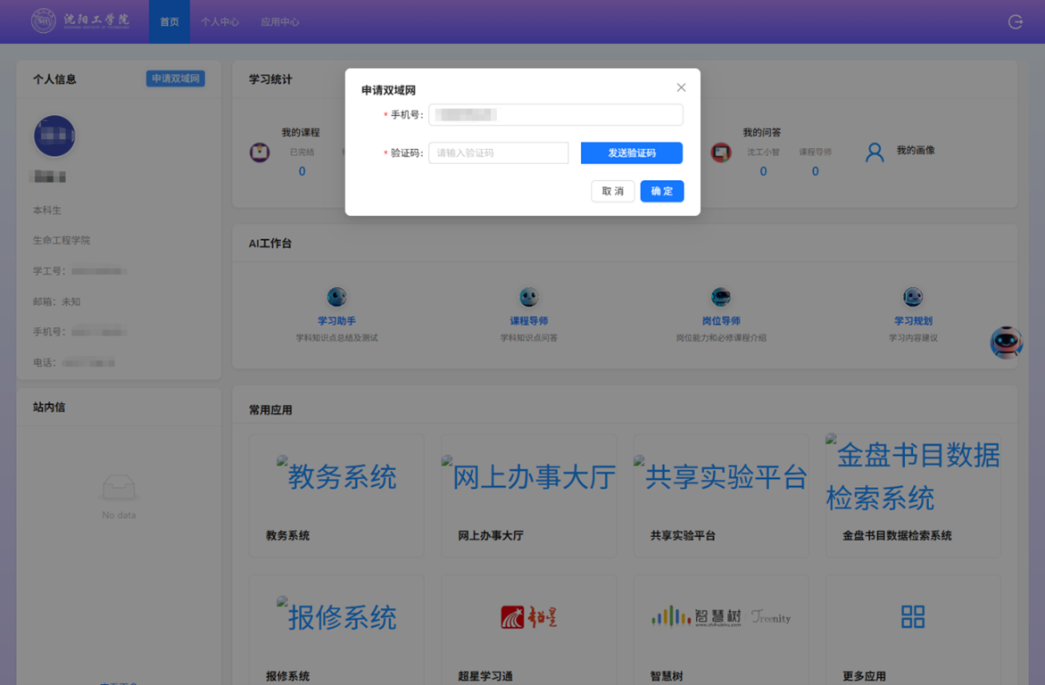 为满足在校学生便捷访问校园内网需求,我校与中国移动合作签约5G双域专网业务。可实现我校在校学生用户通过4G/5G手机终端无感知访问校园内网(智慧沈工、智慧教学、教务系统等系统),实现内外网访问无感知切换。现推出学生开通双域网服务功能。